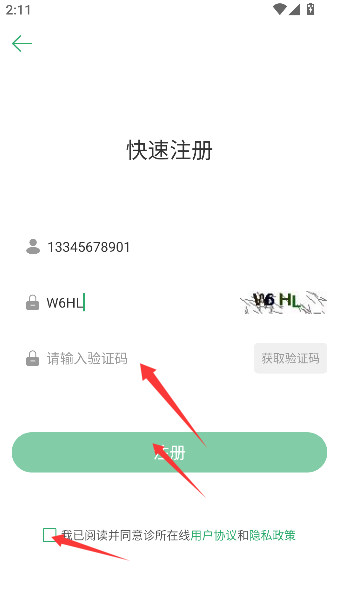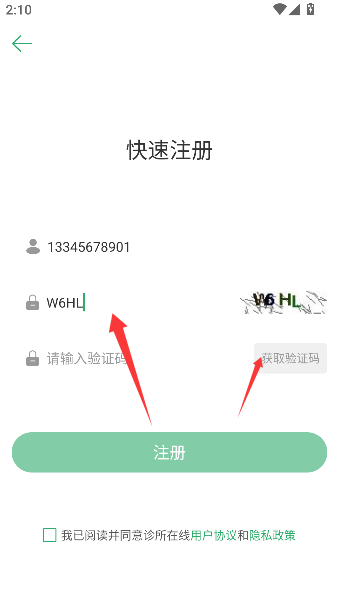 2、准确输入图形验证码并点击获取手机验证码,如同收到一封来自诊所的加密欢迎信件。