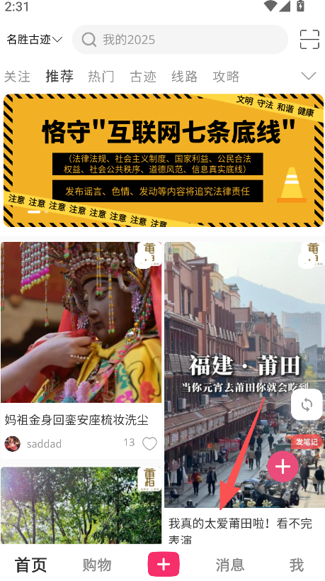 1、打开软件,浏览首页推荐的莆田内容,了解本地文化。