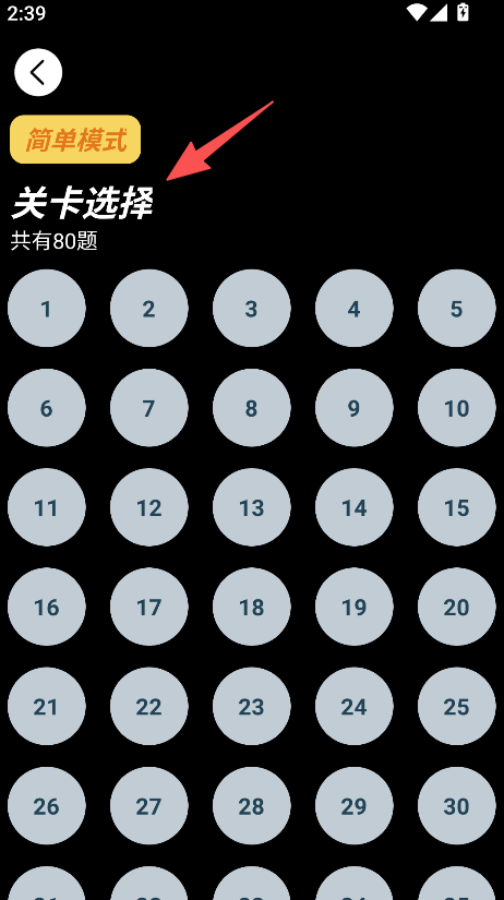 1、打开软件,选择难度模式,进入关卡选择界面。