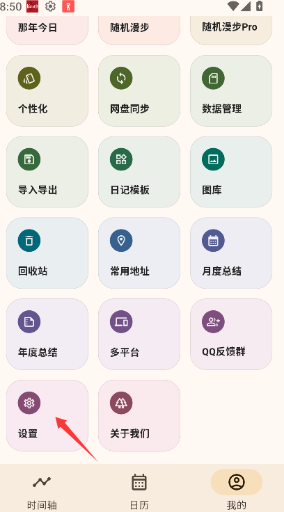 2、浏览功能列表并选择"设置"选项,进入应用参数配置界面。
