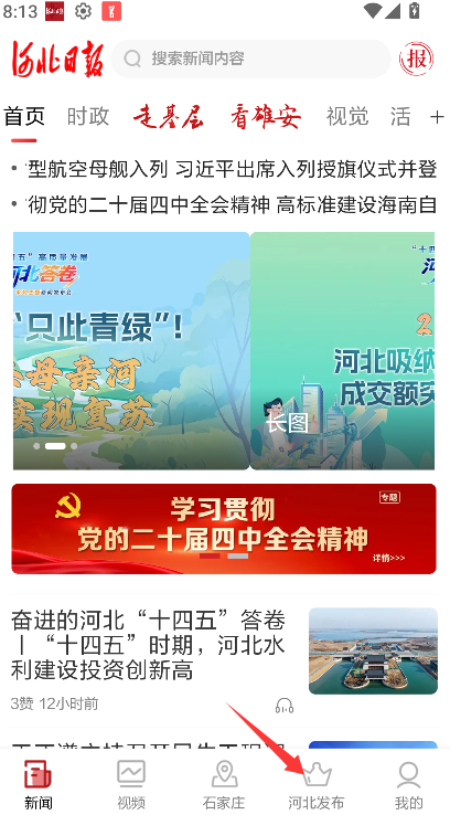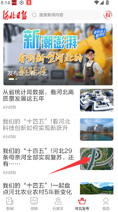 1、找到并点击"河北发布"专栏入口,进入该栏目的内容列表页。