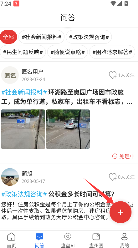 1、找到并点击"问答"功能入口,进入问答社区主页面。