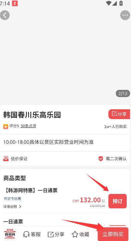 3、查看详细说明后,点击页面下方的"立即预定"按钮即可完成门票预订操作。