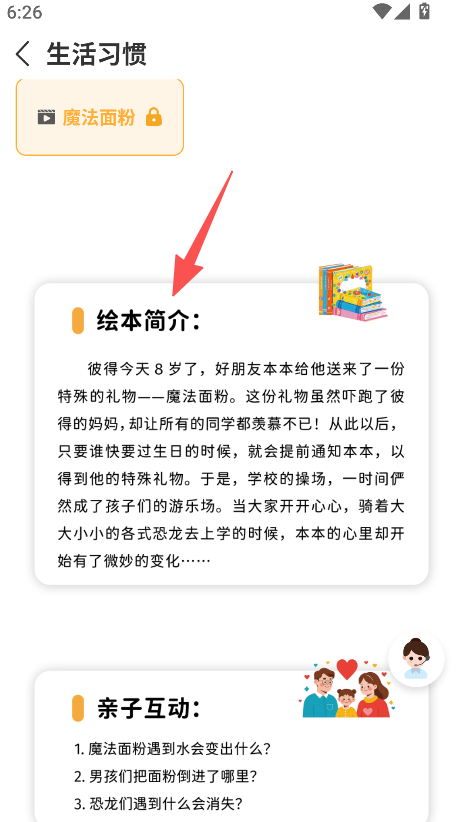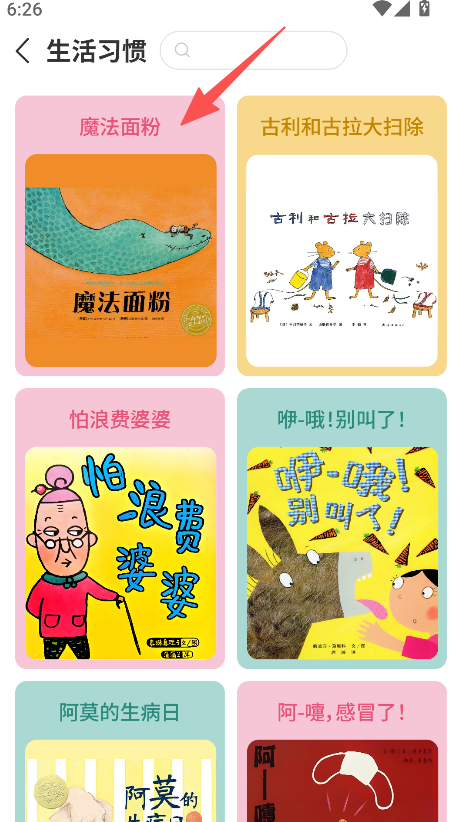 1、打开软件,点击生活习惯板块,选择绘本,进入详情页。