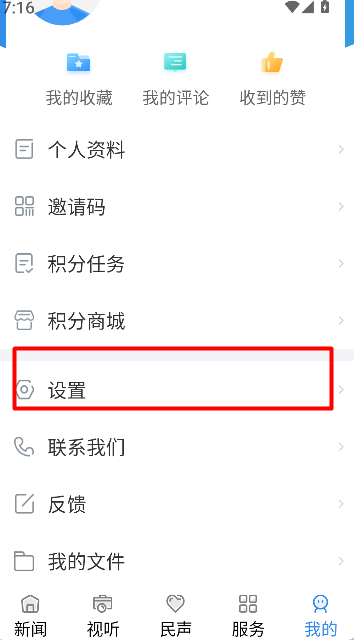 2、在个人中心中找到“设置”栏目,点击进入可调整显示、通知等基础配置内容。