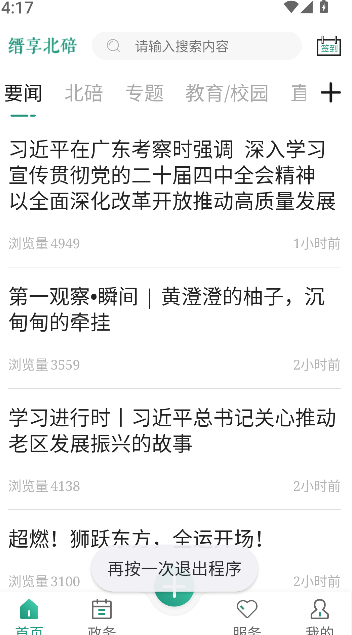 2、在要闻页面下拉浏览,可查看北碚区域最新动态、政策信息和本地事件情况。