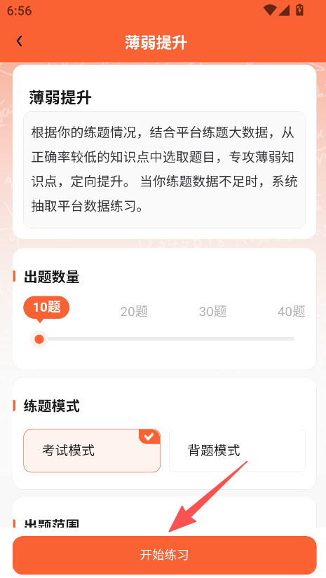 3、模式多样,考试、背题、练题多种模式可选,出题数量灵活设置,学习方式适配不同备考阶段。