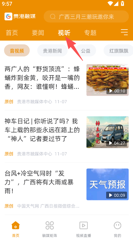 2、支持视频观看功能,视听板块提供本地音视频资源,用户直观感受贵港美食、产业等,视觉体验丰富。