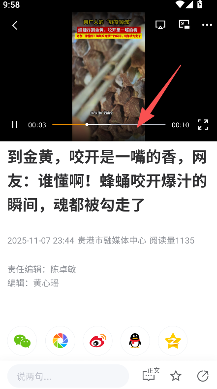 2、观看视频,了解贵港本地美食、产业等资讯。