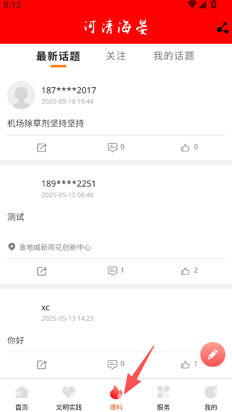 3、进入爆料板块,查看最新话题,参与本地话题交流。