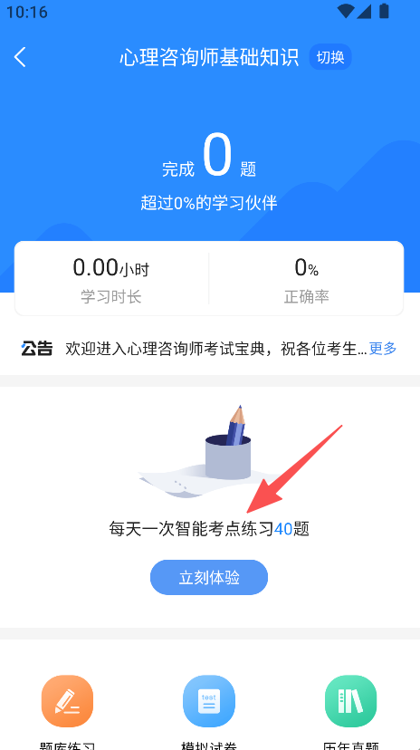 2、支持智能练习功能,每日智能考点练习,考生刷题巩固,心理咨询师知识储备丰富。