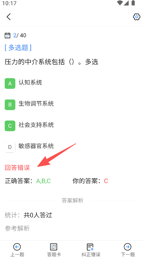 3、实现解析查看功能,答题后详细解析,考生理解错题根源,心理咨询师知识漏洞快速弥补。