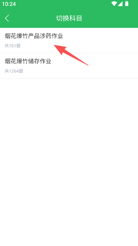1、打开软件,切换科目(如烟花爆竹产品涉药作业),进入题库页面。