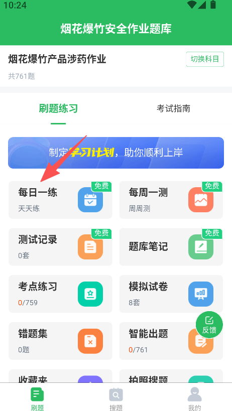2、功能模块丰富,集每日一练、模拟试卷、备考指南于一体,烟花爆竹安全作业备考从练习到考试信息了解环节完整。