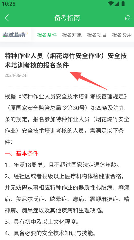 3、进入备考指南,查看报名条件等考试信息,了解考试要求。