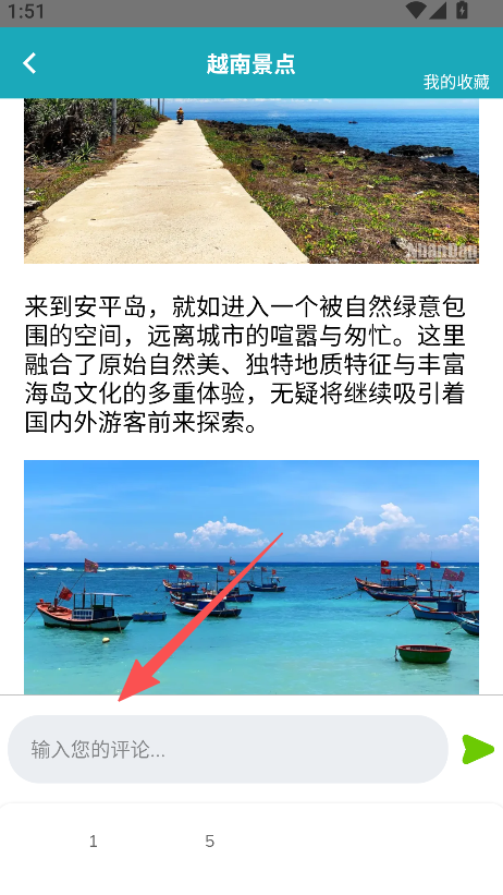 1、打开软件,选择越南景点(如安平岛),进入详情页查看景点介绍。