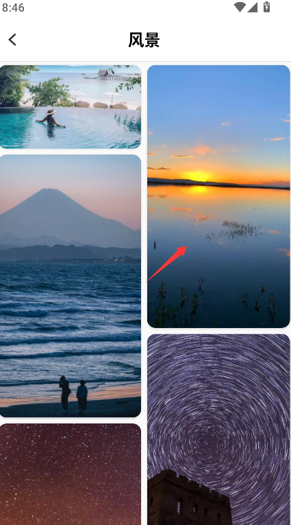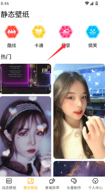 1、在主界面选择“静态壁纸”栏目,进入后点击“风景”分类标签,即可浏览该类别下的全部壁纸资源。