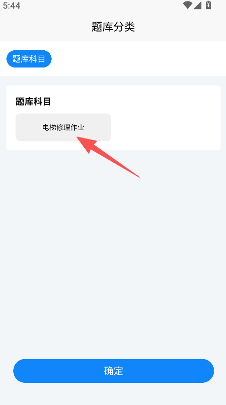 1、选择题库科目(电梯修理作业),点击确定进入。