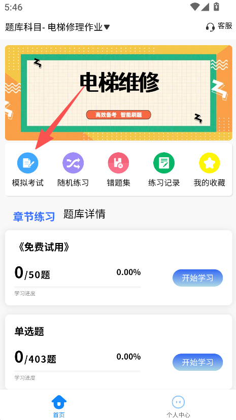 3、刷题答题(做单选题),巩固电梯修理知识。
