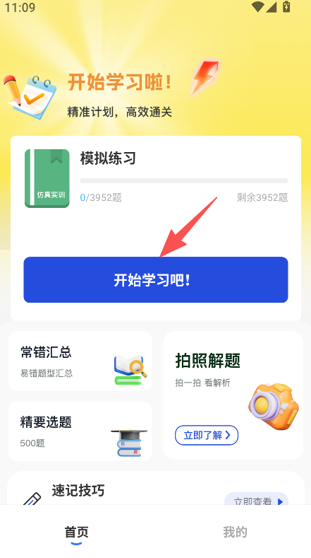 1、点击开始学习吧,进入模拟练习页面。