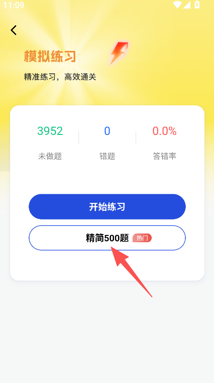 2、选择精简500题,进入答题界面。