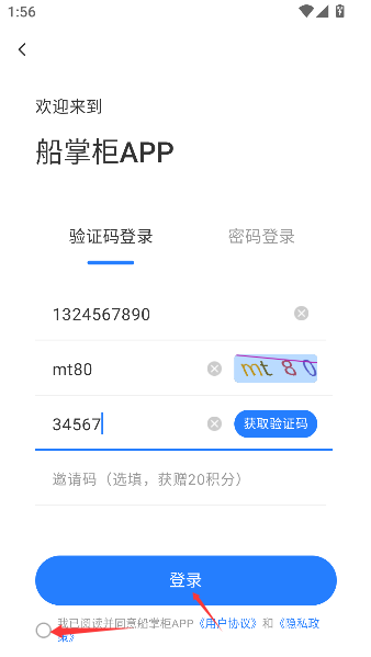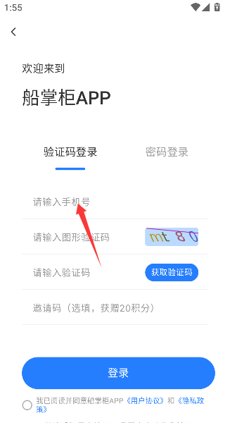 3、认真勾选隐私政策的小方框,最后轻点登录按钮,正式开启这段掌舵数字航运的奇妙旅程。