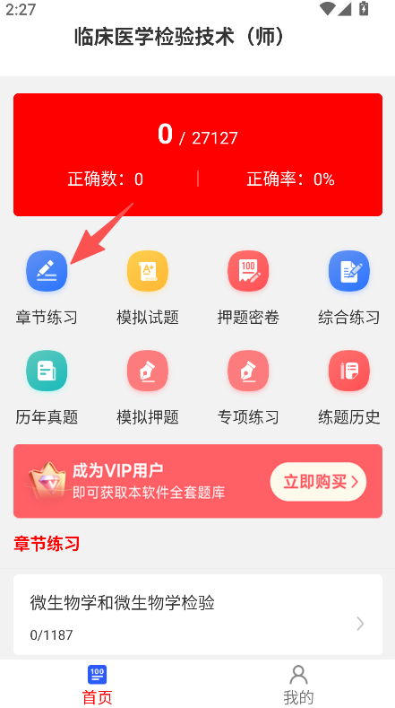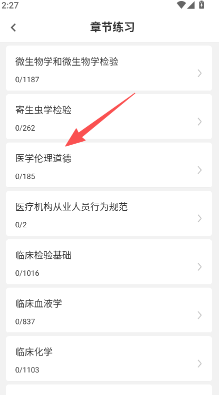 1、具备章节练习功能,细分微生物学、医学伦理等模块,考生可针对薄弱章节专项训练,巩固考点知识。