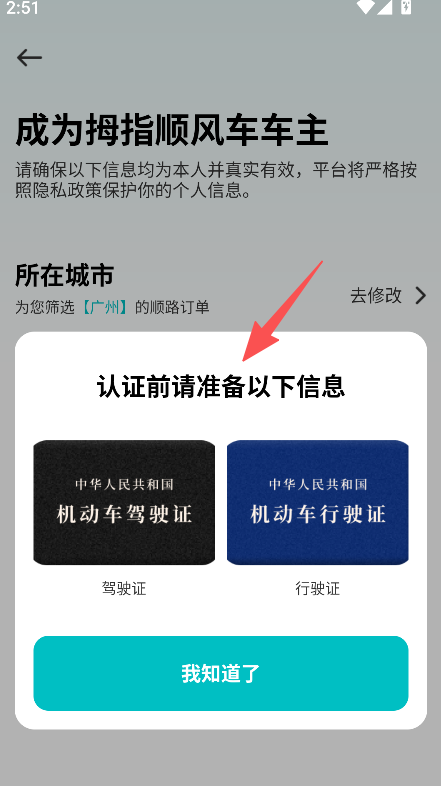 拇指出行如何完成车主认证