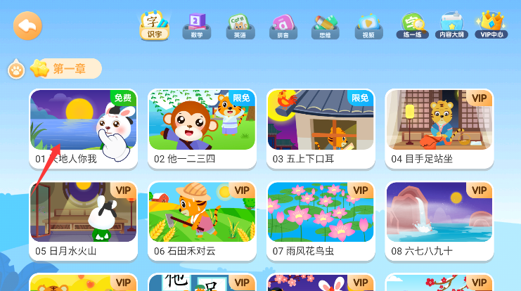 2、可根据孩子当前的实际识字水平,自主选择适合的章节开始学习。