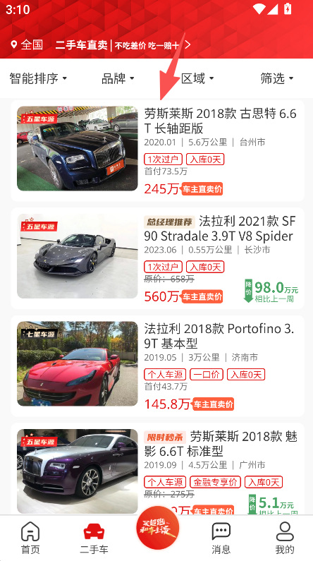 1、车源高端优质,汇聚劳斯莱斯、法拉利等超跑,车源品质高,提升用户选车体验。