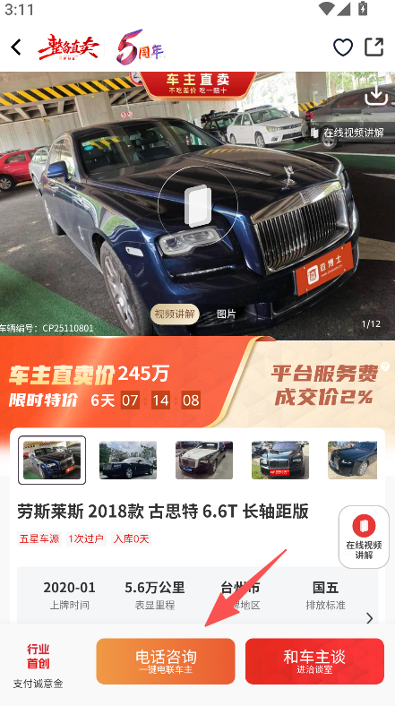 3、点击电话咨询或和车主谈,进行超跑交易沟通。