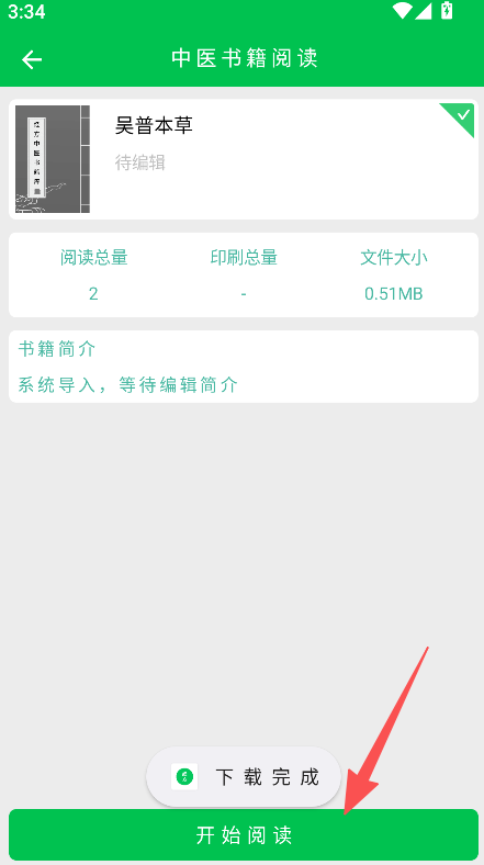 2、支持书籍阅读功能,中医书籍(如《吴普本草》)可阅读,用户学习经方中医知识,学习有途径。