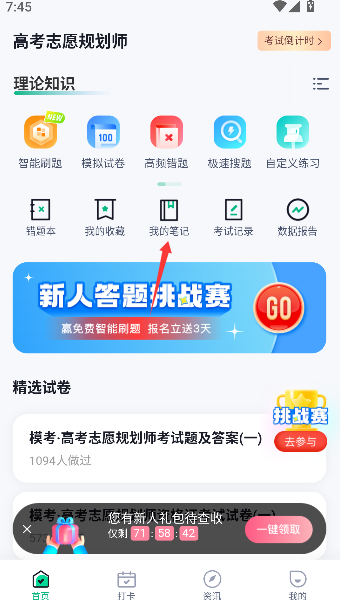 1、在首页找到那个像小本子图标的“我的笔记”入口,轻轻一点就打开了专属的备考资料藏宝洞。