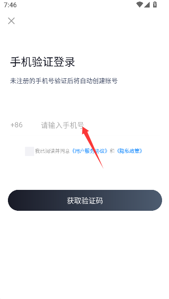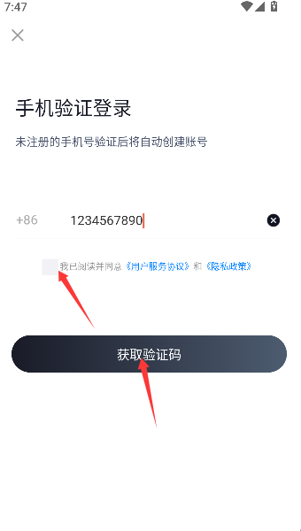 3、仔细勾选同意隐私政策的小方框,然后点击获取验证码,就像拿到打开知识宝库大门的临时钥匙。