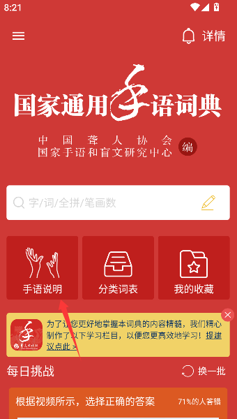 1、轻点“手语说明”按钮,就像打开一本充满神秘手势的密码地图,准备解锁无声世界的沟通奥秘。