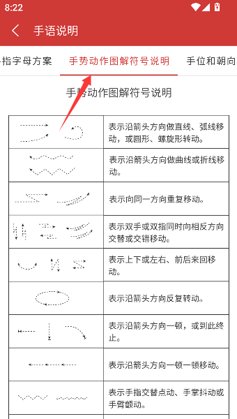 3、继续滑动屏幕浏览手势动作图解符号说明,这些生动图解就像一张张通往手语世界的趣味藏宝图。