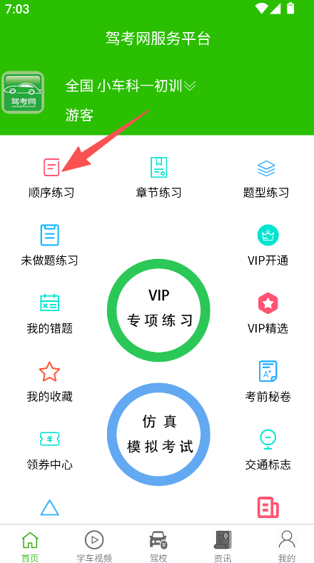 1、选择车型(如小车),进入练习模式(如顺序练习)。