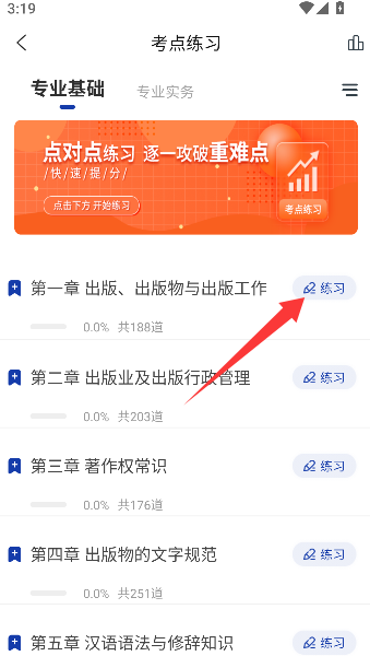 1、轻点那本厚重的“出版资格题库”图标,犹如推开知识宝库的大门,在首页果断按下“考点练习”,正式踏入这场智慧的修炼场。