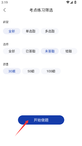 3、面对为你准备好的多种题型“装备库”,快速选定你的主攻方向,最后用力点击“开始做题”,这场脑力冲浪便即刻启航。