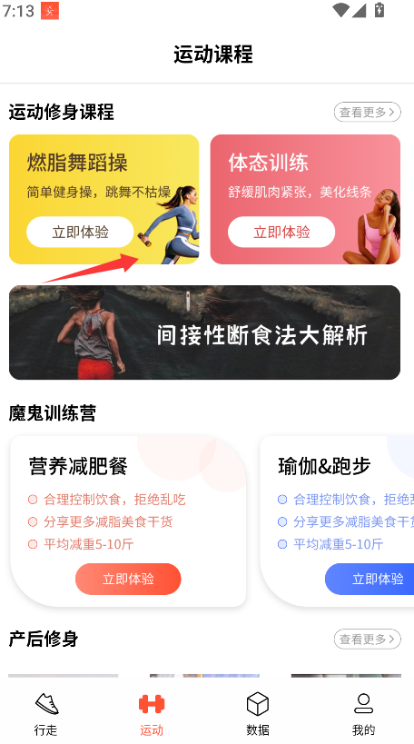 1、找到并点击“燃脂舞蹈操”课程入口,进入该系列课程的详细列表页面。