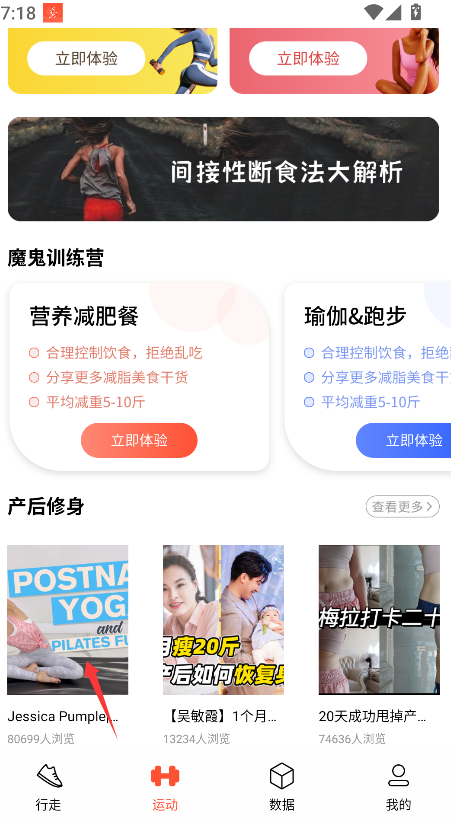 2、应用功能模块内设有“产后修复”专项课程,可直接选择进入,获取针对性的训练方案与指导。