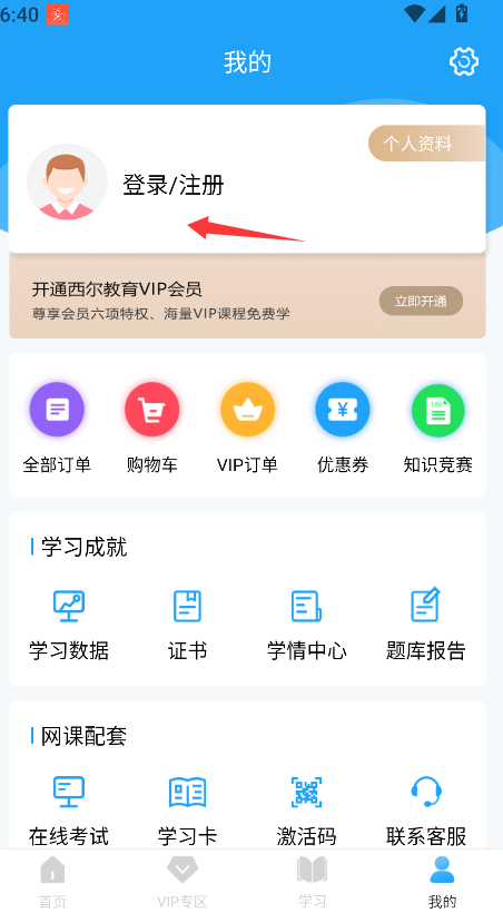 2、在个人中心页面内,清晰定位并点击“登录/注册”按钮,系统将跳转至账号认证界面。