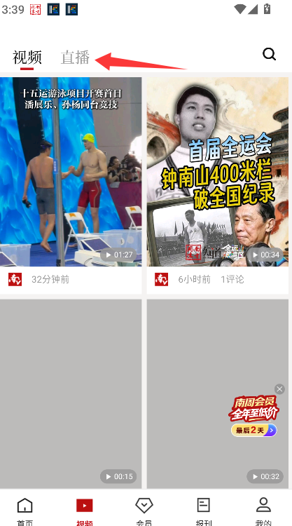 1、启动校园服务类应用,在底部导航栏找到并点击“视频”选项,进入个人中心页面。