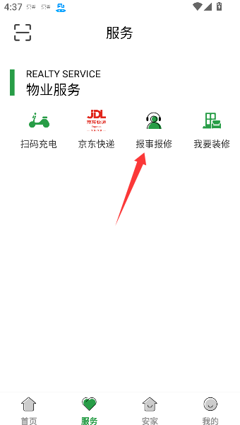 2、果断按下“报事报修”选项,就像拉响了社区物业的专属警报,准备详细描述水龙头的心事。