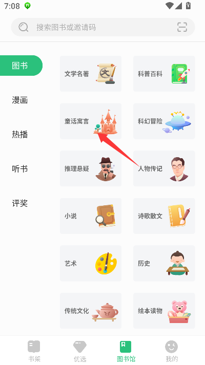 1、点击核心功能或“图书馆”入口,进入书籍分类浏览界面。