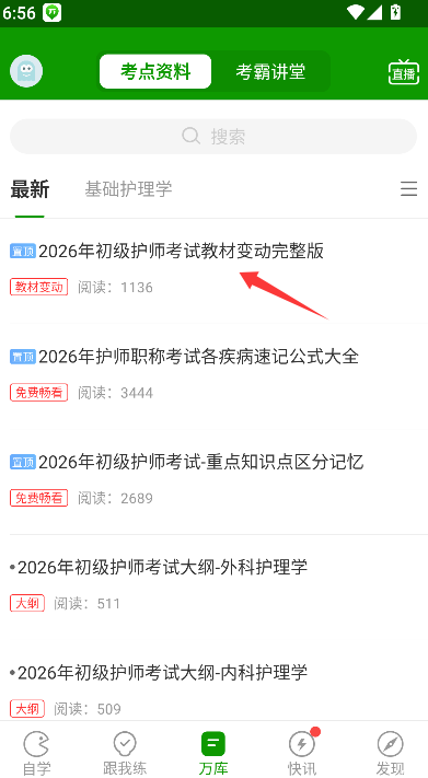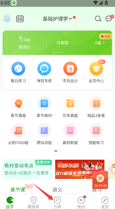 1、打开应用进入主页面,点击核心功能“万题库”入口,进入题库中心。
