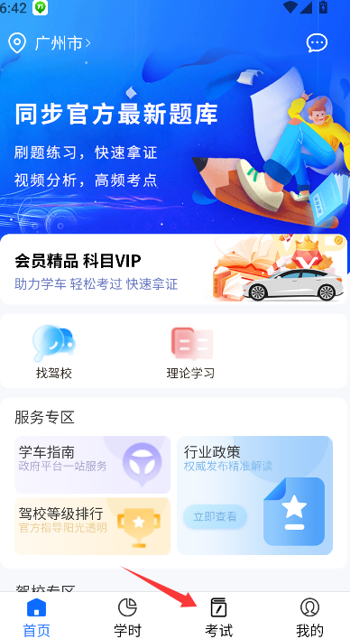 1、点击清晰标识的“考试”功能入口,进入考试学习中心。