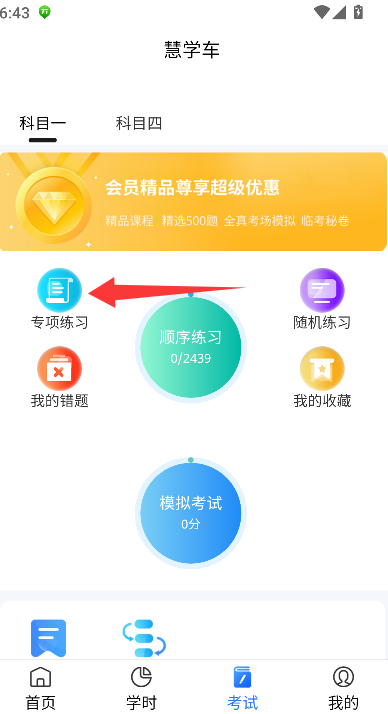2、可根据自身学习需求,从科目一、科目四等不同类别中筛选并调取需要重点练习的专项板块。
