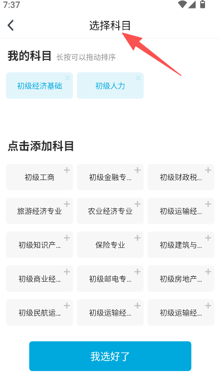 2、进入选择科目页面,添加所需科目后点击我选好了。