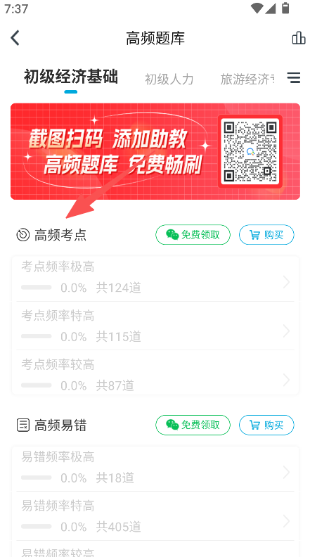 3、聚焦题库练习板块,将题库细分为高频考点、高频易错等类别,帮助考生明确备考重点,提升复习针对性。